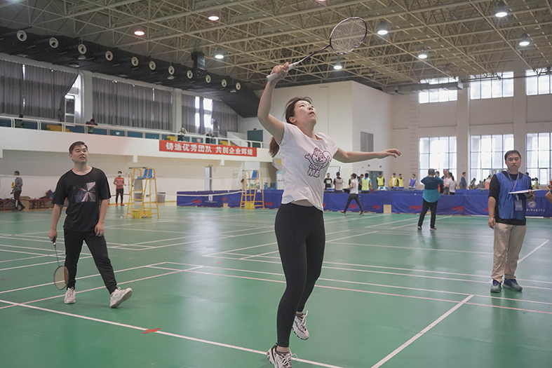 羽毛球賽場上,隊員們盡顯風采,揮舞著充滿力量的臂膀,將高遠球、扣殺、劈殺、吊球等各路球技展現的淋漓盡致。在場上,隊員們不畏強敵,賽出了斗志,賽出了水平。揮舞吧,有力的臂膀,向上吧,燃燒的青春!